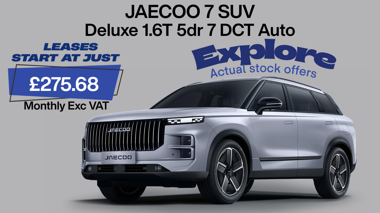 Explore exciting offers on the JAECOO 7 Deluxe, featuring outstanding leasing prices. This model is an affordable luxury SUV, equipped with a powerful 1.6T GDi high-torque engine. The exterior boasts a sleek, striking design with 19-inch alloy wheels. Inside, enjoy heated front seats upholstered in luxurious synthetic black leather, accented with detailed stitching. The vehicle offers top-tier entertainment with a 13-inch central touchscreen, wireless Apple CarPlay and Android Auto, a comprehensive suite of accident-avoidance safety systems, and much more.