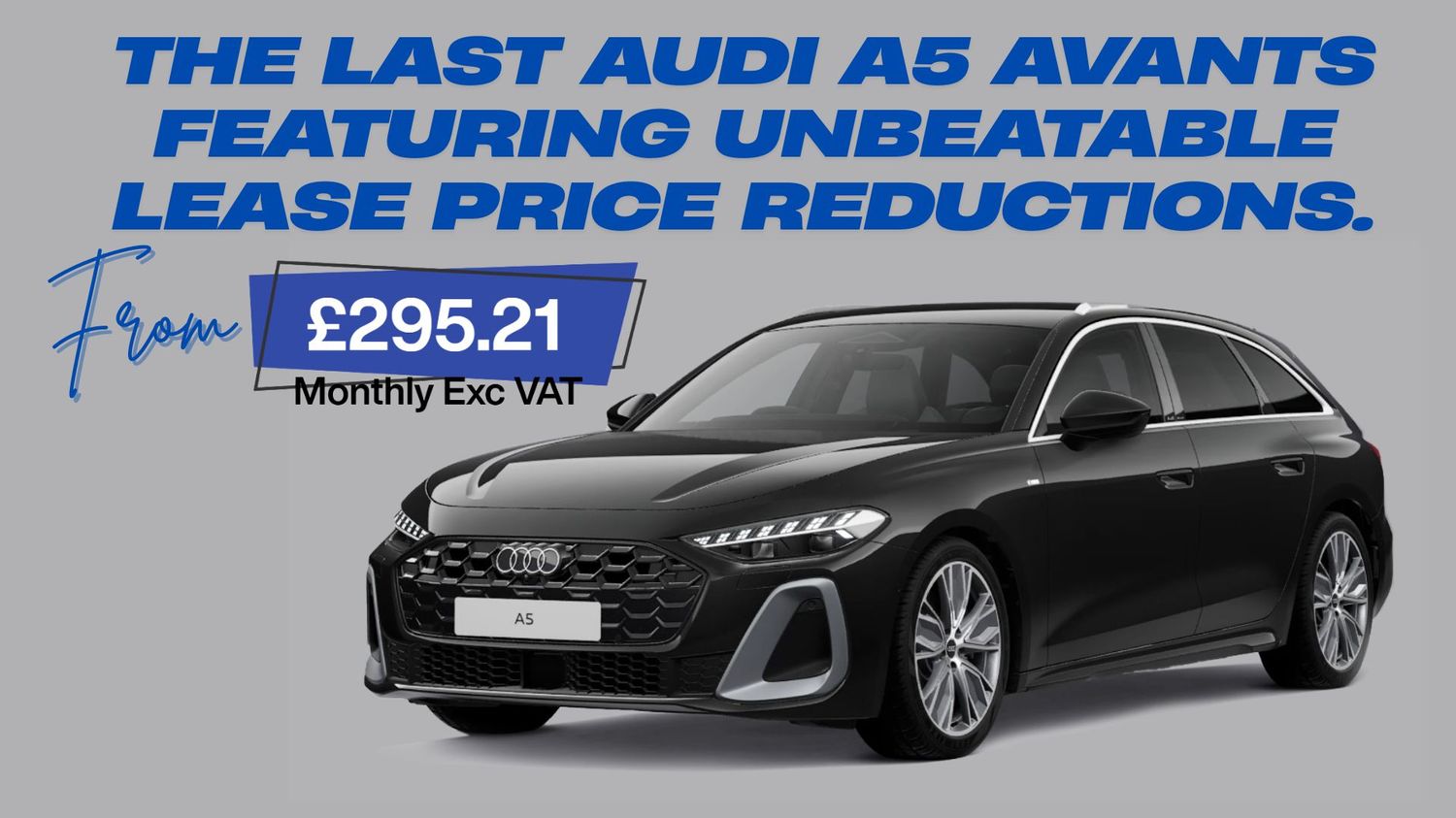 AVC offers outstanding leasing and personal leasing options for a select range of Pre Reg A5 AVANTS. This model is a sleek estate car that features a sporty exterior design, along with a versatile load space and a luxurious feel. The Avant's 476-liter boot, which can be expanded to 1,424 liters with the rear seats folded, provides ample room for luggage and everyday essentials. The power-operated tailgate and split-folding rear seats enhance its practicality. Including the Sport, S Line and S Line with Sound & Vision Pack.