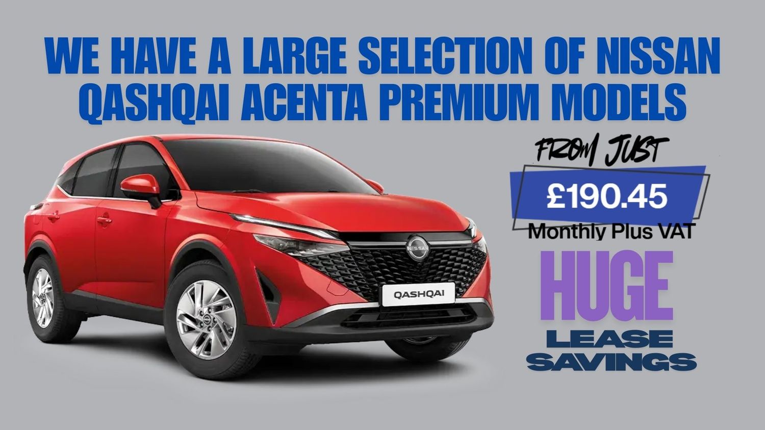 Explore actual stock offers for the Nissan Qashqai, Acenta Premium Manual, and X- Tronic with exceptional leasing prices. Exterior Styling includes 17-inch alloy wheels, updated front end, sharper lines, with a more prominent grille, and sleek L E D lighting to both the front and rear. Inside, there is a spacious, comfortable interior.