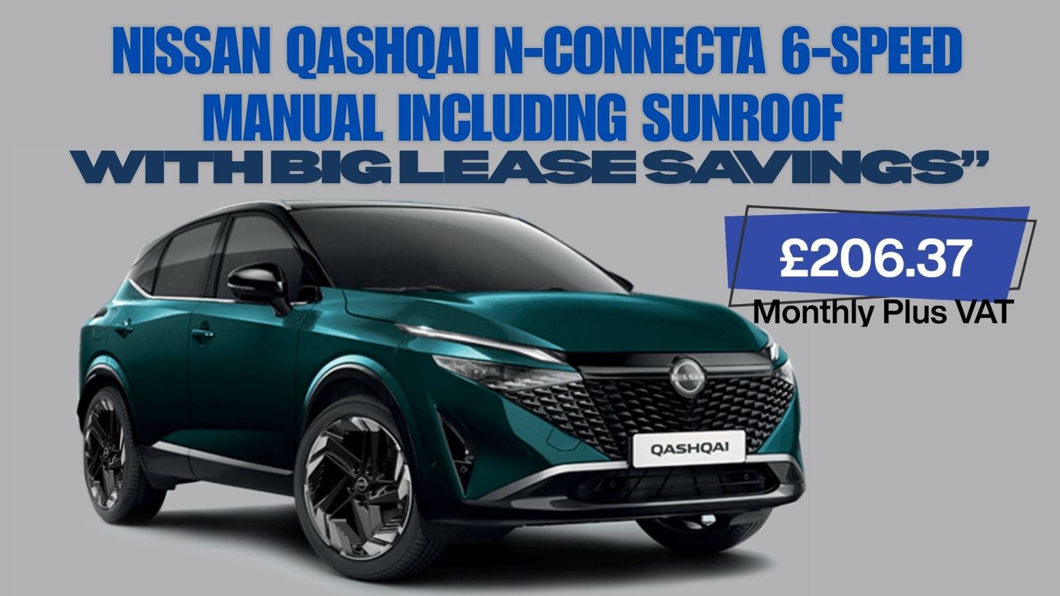 Explore actual stock offers for the Nissan Qashqai, Nissan Qashqai 1.3 N-Connecta Manual, with panoramic sunroof and metallic and pearl paint options, all at exceptional leasing and personal lease plan prices. Exterior Styling includes 18-inch diamond-cut alloy wheels, updated front end, sharper lines, with a more prominent grille, and sleek L E D lighting to both the front and rear. Inside, there is a spacious, comfortable interior. You'll enjoy a roomy cabin with comfortable seats in Black Fabric and Synthetic Leather inserts. At the same time, other key features include dual-zone climate control, Nissan Connect with Google integration, and a touchscreen display that supports Apple CarPlay and Android Auto. Nissan's 360-degree camera system assists you with parking, along with a vast array of convenient tech features and important safety technologies. These leasing offers feature a wide range of Pre Reg Qashqai stock-vehicle leasing deals, detailed separately, with actual paint options and add-on costs, and customisable lease and personal terms that you can easily tailor to suit your budget and driving needs, including a complete maintenance plan, available directly from this promotion. The team at AVC is here to help you secure your order for these amazing stock offers.
